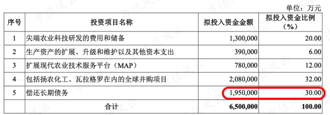 这次的募集资金有195亿是用于偿还长期债务的,有利于先正达负债率的继续优化。