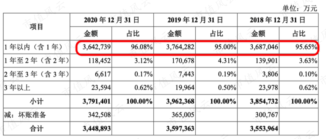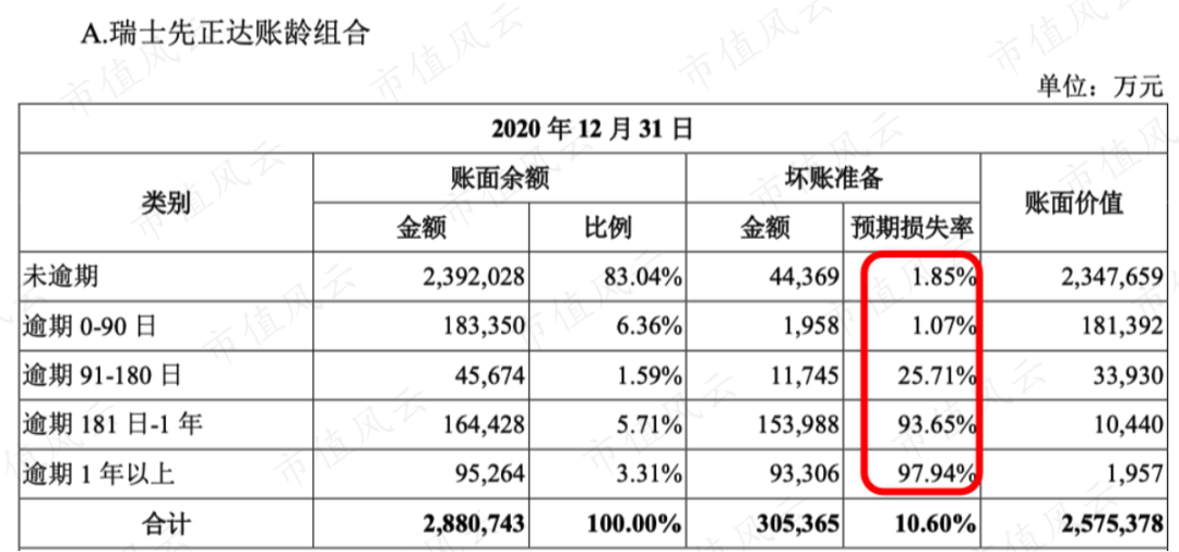 其次,应收账款计提也比较严,逾期半年就要预计损失率90%以上。