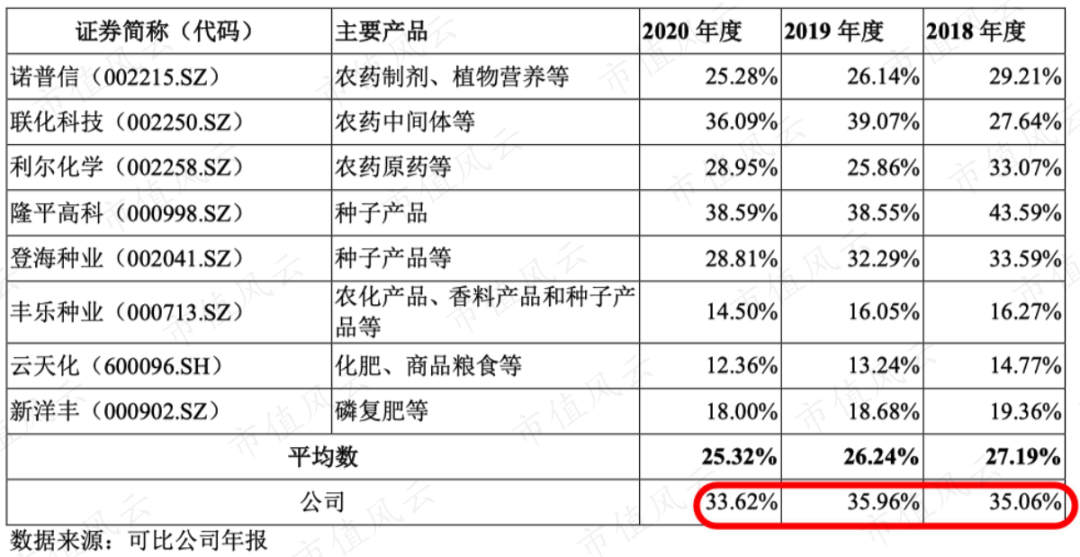 2018年-2020年先正达的毛利率分别为33.62%、35.96%、33.62%,不算高,但也高于行业水平。