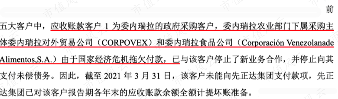 原因是:应收账款客户1是委内瑞拉的政府采购客户(委内瑞拉农业部下属),由于国家经济危机付不了钱……