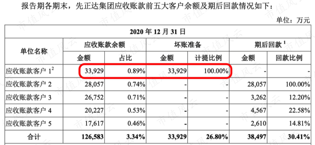 风云君翻看先正达应收账款的情况时,发现应收账款客户1(2020年应收账款第一名、2019年应收账款第二名、2018年应收账款第四名)居然计提100%。
