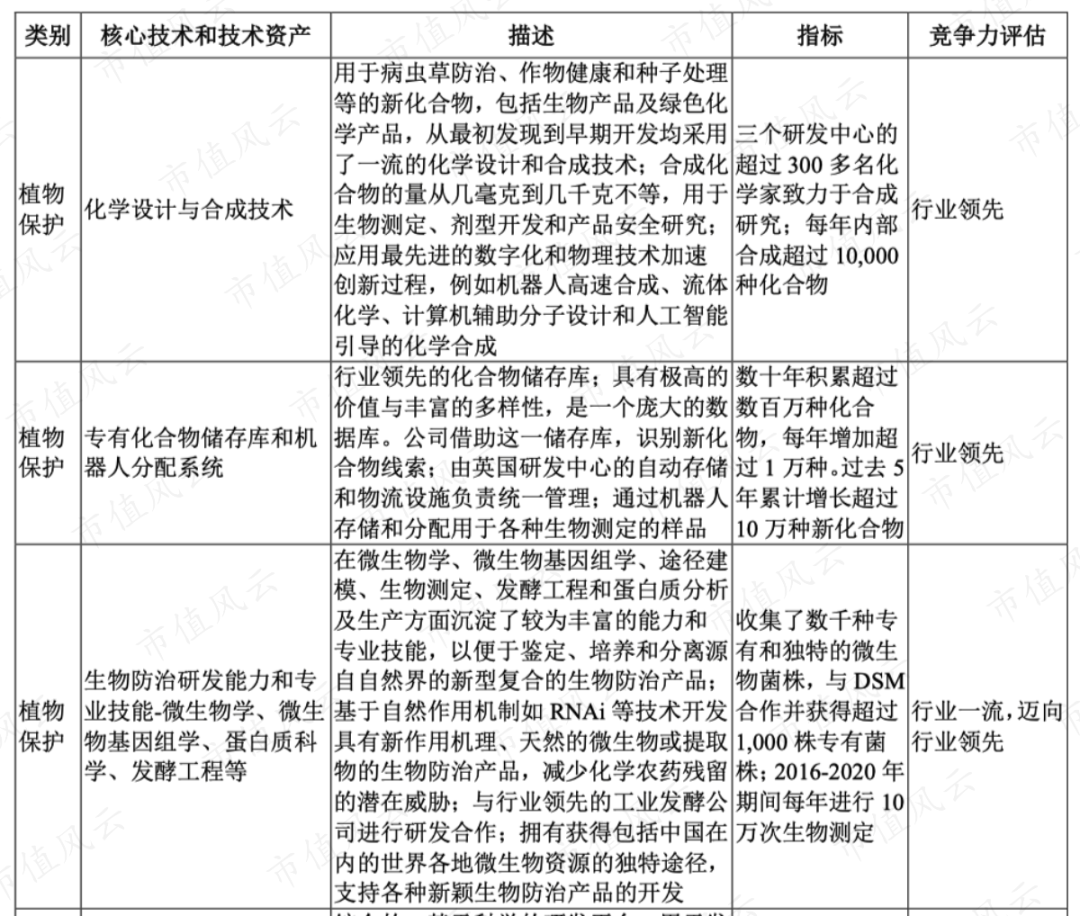 先正达的核心技术在植物保护、种子、作物营养、现代农业服务等细分行业内,均处于行业领先或一流水平。