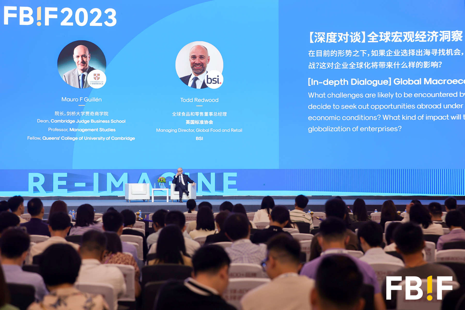 随着时针指向13:30,下午的活动也随即启幕。剑桥大学贾奇商学院院长Mauro F Guillén和英国标准协会全球食品和零售董事总经理Todd Redwood进行了主题为“全球宏观经济洞察”的深度对谈。二位嘉宾对当前的经济发展和相关发展趋势做出了自己的见解和分享。