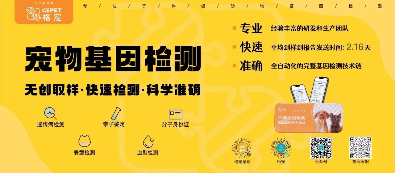 依托格致博雅生物,格宠以基因检测切入宠物全生命周期管理